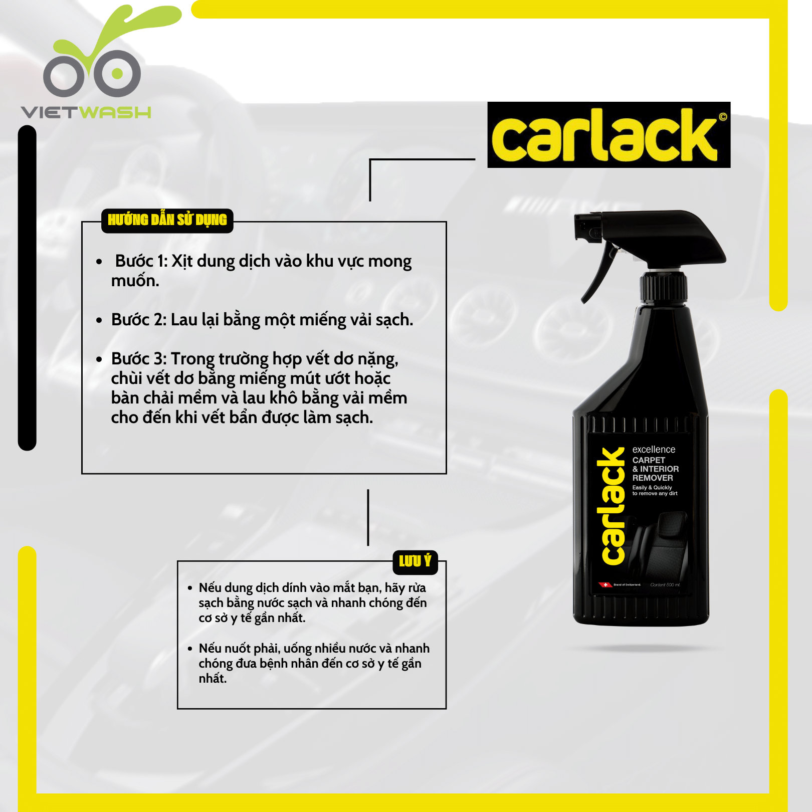 🤝 Sản phẩm dung dịch vệ sinh nội thất Carlack 500ml là hàng nhập khẩu chính hãng 100%, đồng thời là nhà phân phối ĐỘC QUYỀN sản phẩm Carlack ở thị trường Việt Nam.